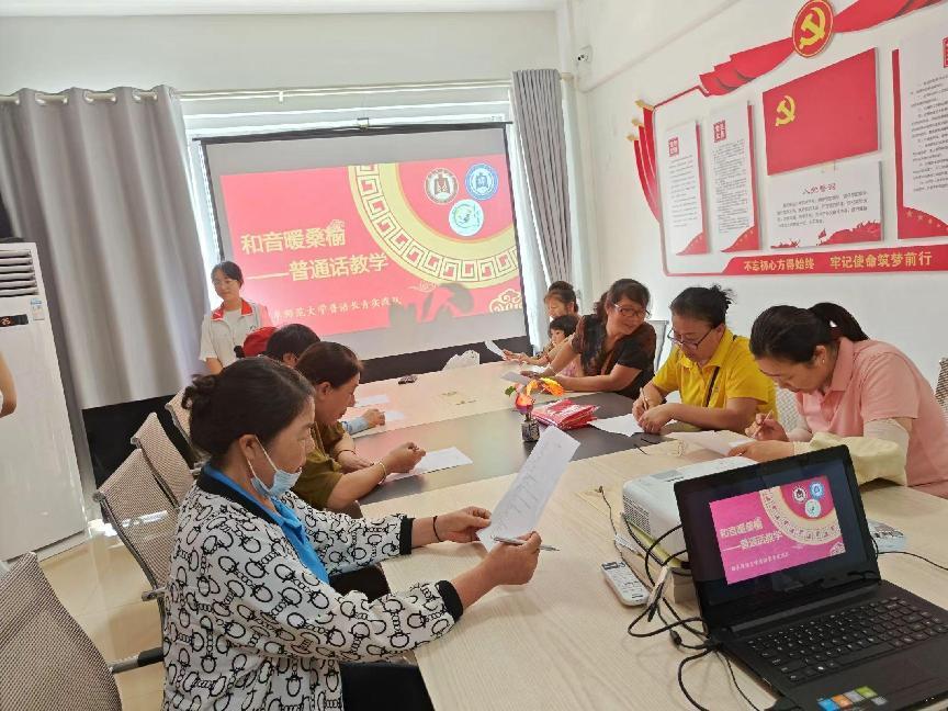 中國(guó)大學(xué)生之聲網(wǎng)青島7月16日電(通訊員 儀新寧)在多民族、多語(yǔ)言的中國(guó),普通話不僅是溝通的橋梁,也是文化傳承和社會(huì)發(fā)展的重要工具。隨著全球化的不斷深入,普通話作為中國(guó)對(duì)外交流的主要語(yǔ)言,其重要性日益凸顯。然而,在一些地區(qū),普通話的普及程度仍有待提高。黨的十八大以來(lái),以習(xí)近平同志為核心的黨中央高度重視語(yǔ)言文字工作。習(xí)近平總書記就推廣普及國(guó)家通用語(yǔ)言文字、傳承弘揚(yáng)中華優(yōu)秀語(yǔ)言文化等作出一系列重要指示批示,為新時(shí)代語(yǔ)言文字事業(yè)發(fā)展提供了思想指引和行動(dòng)指南。習(xí)近平總書記強(qiáng)調(diào):“全面加強(qiáng)國(guó)家通用語(yǔ)言文字教育,不斷提高各族群眾科學(xué)文化素質(zhì)。”為了響應(yīng)國(guó)家的號(hào)召,曲阜師范大學(xué)翻譯學(xué)院“普語(yǔ)長(zhǎng)青實(shí)踐團(tuán)”于2024年7月6日及10日分別前往日照市東港區(qū)中盛幸福苑養(yǎng)老院、三槐幼兒園及云海社區(qū)發(fā)起了“普語(yǔ)潤(rùn)童心,和音暖桑榆”活動(dòng),向中老年人及兒童普及普通話,強(qiáng)調(diào)普通話的重要性,同時(shí)激勵(lì)成員們?cè)诟髯缘募亦l(xiāng)開展了一系列普通話普及的宣傳活動(dòng)。旨在通過(guò)實(shí)踐活動(dòng),讓普通話成為更多人的日常語(yǔ)言。