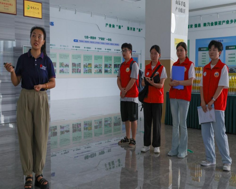 實踐團隊了解到公司立足平邑縣金銀花道地產區優勢,從源頭做起,再到大健康產品,形成了中藥材為主的完整產業鏈條。平邑縣是金銀花的原產地和主產區,金銀花現有種植面積65萬畝,年產干花1.8萬噸,產量占全國的60%。但一直以來,平邑縣都以買原料賣原料,缺少精深加工,急需補煉強煉提檔升級,山東中平藥業有限公司借助平邑金銀花原產地的優勢,通過產業化平臺打造建成集種植、加工、研發、生產、檢測、倉儲、物流和追溯于一體的現代化金銀花健康產業園以及全面優化提升中藥全生命周期的現代化產業園。充分的運用金谷供應鏈平臺,使所有的板塊緊密的聯系在一起,協同發展,不斷拉長產業鏈條,形成循環模式,帶動產業健康持續發展。