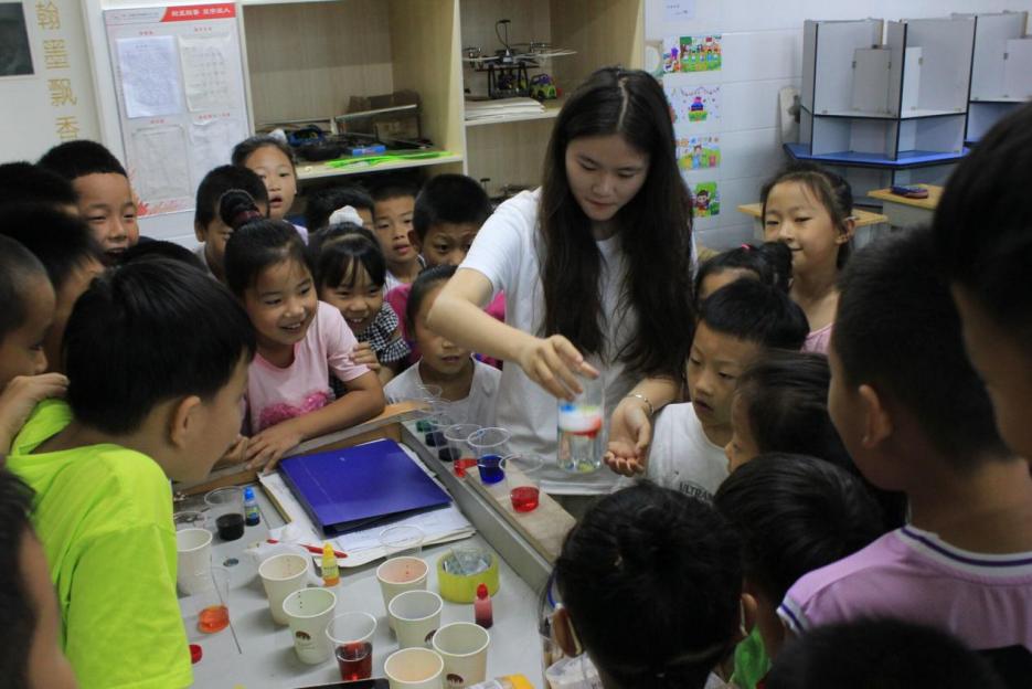 圖為科學老師李甜甜對實驗進行示范。山東理工大學趙一提供