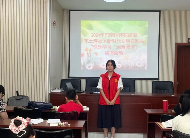 閱讀是時(shí)代文化傳承的手段,是青年心智健康成長(zhǎng)的方法。閱讀可以增添青少年生命的色彩,書寫全面發(fā)展的精神底色,同時(shí)也可以塑造更加美好的人格魅力與精神追求。由此可知,指引祖國(guó)青少年健康閱讀、快樂(lè)閱讀、愛(ài)上閱讀的重要性顯而易見(jiàn)。為了讓社區(qū)的青少年們閱讀健康書籍,防止暑期沉迷網(wǎng)絡(luò),促進(jìn)身心智全面發(fā)展,接受文明思想引領(lǐng),南京財(cái)經(jīng)大學(xué)會(huì)計(jì)學(xué)院“探尋社會(huì)新建設(shè),感悟歷史新成就”團(tuán)隊(duì)于8月24日來(lái)到重慶市巴南區(qū)花土灣社區(qū)開(kāi)展“快樂(lè)學(xué)習(xí),綠色閱讀”讀書分享活動(dòng)。
