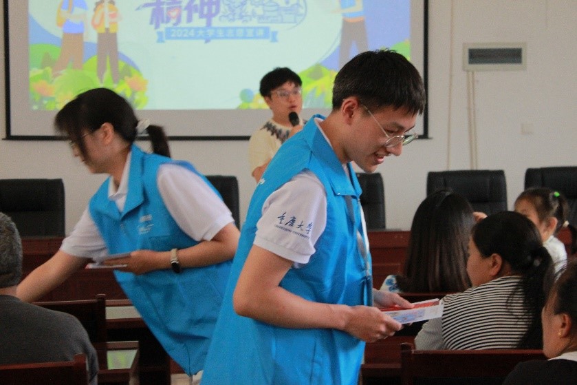 上午9時,新星宣講團的成員們身著藍色馬甲,佩戴工作證,在后坪鄉新時代文明實踐大講堂開展“兩彈一星”精神宣講。聽眾席上匯聚了多元的面孔:有耕耘在鄉間田野、臉龐上刻滿歲月痕跡的農民伯伯,也有趁著假期歸鄉的莘莘學子,他們的笑容中交織對未知的好奇。