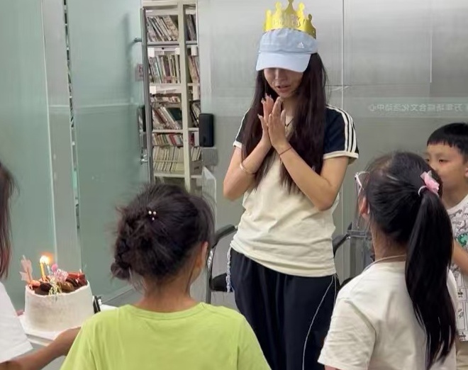 大家一起為輔導老師慶生。小朋友們用稚嫩的歌聲和純真的祝福,讓老師感受到了滿滿的溫暖與感動。