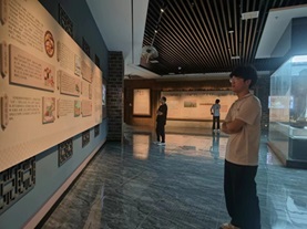 我們依次參觀了巢湖古代文明、民俗文化、革命歷史等多個展區,這里通過時間線的方式展示了巢湖地區從史前時期到近現代的發展歷程,圖文并茂的展板、地圖和時間軸幫助參觀者形成對地區歷史發展的整體認識。每一件展品,每一幅圖片,都承載著巢湖人民的智慧與汗水,訴說著這片土地上的故事。團隊成員們時而駐足凝視,時而輕聲交流,對巢湖文化的獨特魅力有了更深刻的認識。