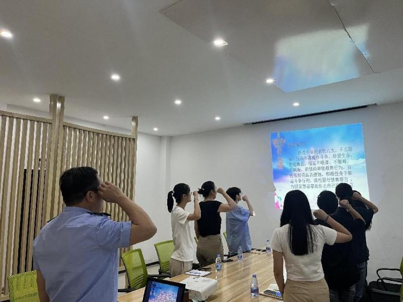 隨后,實踐隊與薌城區社區戒毒康復指導站的民警進行了深入的座談交流。座談會上,民警詳細介紹了禁毒法治理念、漳州禁毒工作成效以及面臨的挑戰。實踐隊成員們認真聆聽了民警的講解,并就禁毒宣傳、社區戒毒康復工作等方面的問題進行了積極的提問和交流。他們紛紛表示,通過此次參觀和座談,不僅深刻認識到了毒品的危害性和禁毒工作的重要性,還學到了很多實用的禁毒宣傳方法和技巧。他們表示將把所學到的知識和經驗帶回學校,積極投身到禁毒宣傳工作中去,為構建無毒社會貢獻自己的力量。