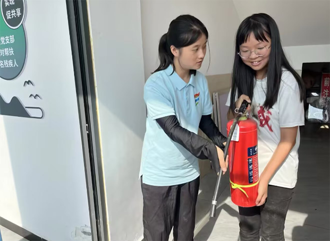 滅火器實操教學,掌握技能護安全 “遇到小火情時,滅火器就是我們的好幫手,大家想不想知道它是怎么用的?”在講解完森林防火知識后,實踐團志愿者拿出了準備好的滅火器模型,開始向孩子們傳授滅火器的使用方法。