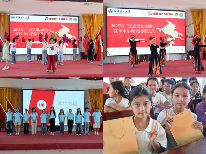 7月23日上午,武漢理工大學管理學院“民族團結我踐行”紅領巾小課堂結課儀式在新疆伊犁切吉村順利舉行。以“推普助力促團結,五育并舉潤童心”為宗旨,實踐隊系統籌劃、精心設計了涵蓋理論教學、課后輔導、實踐養成、文體活動、參觀調研為一體的課程體系,并將五育元素融入全程,在推廣普通話的同時,開展鑄牢中華民族共同體意識教育,有形有感有效地推動了各民族小朋友的交往交流交融,將“民族團結同心圓”畫在大家心中。