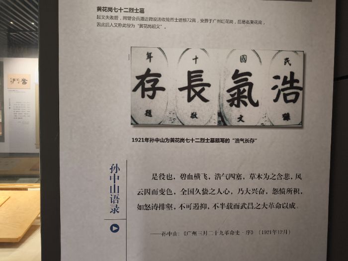 在場館內,團隊成員看著孫中山先生為黃花崗七十二烈士墓題寫的“浩氣長存”四個字,駐足良久。透過這四個字,仿佛傳來千年前血腥味下按耐不住的燥熱的奮起心氣。如孫中山先生所說的那樣,戰役必然存在犧牲,而烈士們灑下的熱血也不會被辜負。它為堅持染色,為發展染色,也為理想染色。