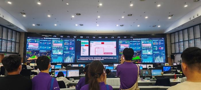 實踐隊第三站來到了西安市智慧環保綜合指揮中心,作為西安市生態環境局直屬的正處級事業單位,自組建成立以來,該中心構建了空氣質量監測站、水質監測站等前端感知網絡,推進智慧環保平臺迭代升級,開發了生態遙感監測管理系統等數字化應用,為西安市生態環境保護做出重要貢獻。