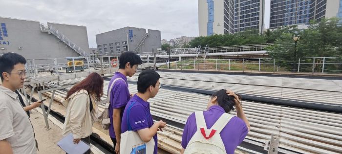 在凈水公司技術專家孫健科長帶領下,實踐隊全體成員及我院水利、環境專業的部分碩士和博士研究生一同開啟了污水凈化的“神秘之旅”,實地參觀學習了污水“預處理+生化處理+深度處理”全流程凈化工藝。