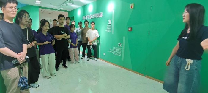實踐隊首先參觀了環保歷程展,系統了解了我國生態文明建設,特別是習近平生態文明思想指引下的歷史性成就。展區以西安市為例,展示了顯著治理成效:2015至2024年,全市優良天數從188天增至283天,PM2.5濃度從80降至45微克/立方米,渭河西安段水質由劣Ⅴ類提升至Ⅲ類,秦嶺北麓生態修復超2000公頃。隊員們深刻理解了生態文明建設的深遠意義。在“公民十條”宣傳區,隊員們學習如何將綠色低碳理念融入日常生活,并通過互動體驗掌握了實用環保知識。有同學感慨道:“環保不僅是理念,更是一套可操作的行為規范。隨手關燈、綠色出行、垃圾分類,這些小事積累起來就是環保大事。”