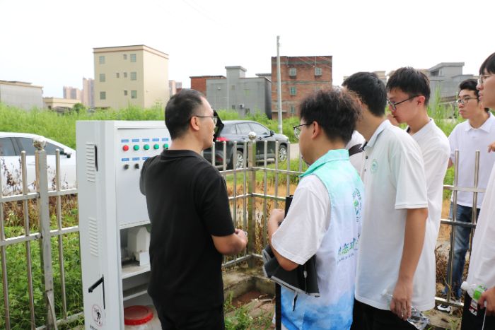 隨后,突擊隊前往恩平市潤遠環保有限公司城區污水處理廠與農村污水處理站參觀,在廠長何競超的介紹下,隊員們了解了污水處理的全部流程,對比分析了城區智能中央控制平臺的實時監測系統、龐大處理構筑物群的高效運轉和農村污水處理的特色運營模式,跨越“課堂理論”與“產業實踐”的鴻溝。同時,通過規范采集當地河道水樣,將河道原水與污水處理廠尾水比對分析,用科學數據評估治理成效,深化專業實踐,校地聯合破解“農村環境治理難”的困境。