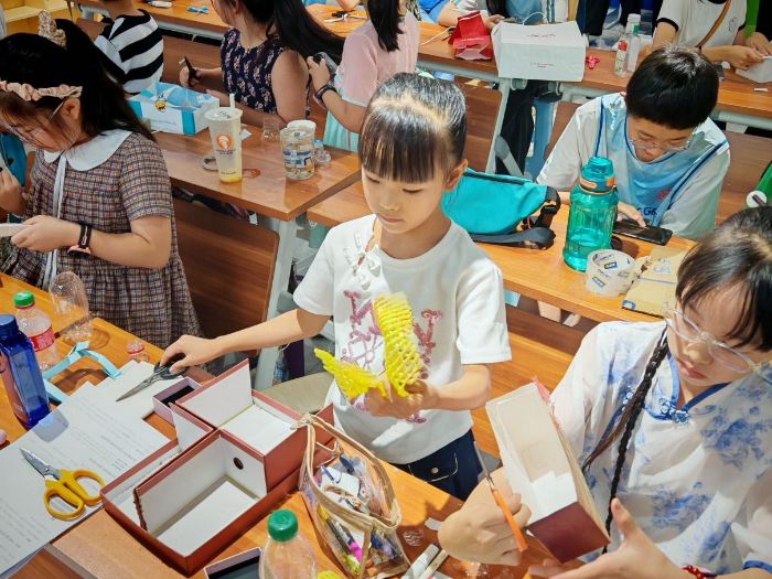 7月10日,“管然一鑫”實踐團聚焦“價值體認、責任擔當、問題解決、創意物化”能力培養,開展“妙手生花——廢物利用”環保手工勞動課,在90分鐘的實踐活動中,20余名兒童完成10件作品:剪裁繪制的塑料瓶變身多肉花盆,開合設計實現“會開花的瓶子”;紙箱挖出門窗構建“玩具士兵城堡”;舊衣布料縫制個性玩偶。整個實操環節充滿歡聲笑語,孩子們不僅享受動手的樂趣,還在遇到困難時互相幫忙,在“做中學”中增強社會責任感與生態文明觀。