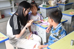 圖 2 圖為實踐團成員與暑托班兒童一起制作手工。曹喻堯 供圖