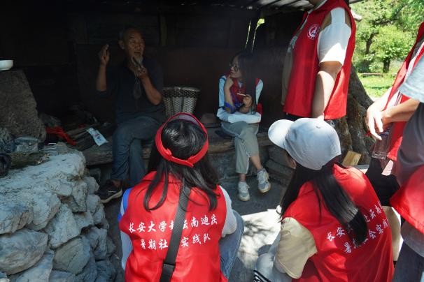 舞蹈之余,實(shí)踐隊(duì)員們對廣場村民進(jìn)行訪談,村民們熱情講解了東巴舞的相關(guān)文化,這為實(shí)踐隊(duì)發(fā)展文旅融合產(chǎn)業(yè)提供新思想、新路徑。
