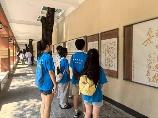 (圖為實踐隊員參觀毛澤東詩詞對聯書法藝術碑廊。通訊員 肖伯健 攝)