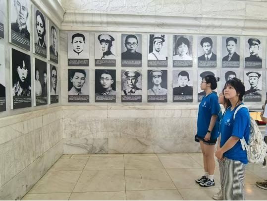 三:緬懷革命先烈志,賡續湘韻傳薪火 走進湖南烈士公園,實踐隊以腳步丈量革命歲月,用心靈感悟先烈忠魂。步入人民英雄紀念陳列館和瀟湘忠魂專題陳列館,館內陳列的手書題詞、烈士文抄、歷史圖片以及蔡和森、夏明翰等90多位英雄先烈們的歷史照片和遺物,生動地再現了當年瀟湘人民們浴血奮戰、不畏犧牲的英勇事跡。