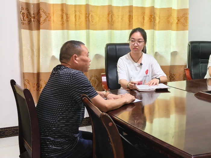 圖為訪談小關鄉(xiāng)金銀花產業(yè)辦負責人現(xiàn)場。王思琪攝。