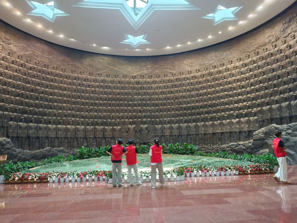 展廳內(nèi),實踐團成員自發(fā)圍站在歷史照片前。老照片里的戰(zhàn)斗場景、革命先輩影像,瞬間拉回烽火歲月。醫(yī)學檢驗技術(shù)專業(yè)的鄭一鳴同學看著紅軍醫(yī)療救護隊的照片感嘆的是:“條件這么艱苦,他們靠信念守護戰(zhàn)友生命!”實踐成員結(jié)合專業(yè)熱烈討論,從革命時期醫(yī)療物資匱乏的困境,延伸到先輩們?nèi)绾斡弥腔劬戎蝹麊T,讓紅色歷史與專業(yè)認知深度交融,在交流中觸摸信仰的力量。環(huán)形雕塑墻前,學生們放慢腳步。密密麻麻的英雄群像與頂面五角星呼應,腳下地理模型鋪滿紅花。有人輕輕觸摸雕塑邊緣,有人低頭默念英雄名字,在莊嚴肅穆里,感受信仰分量;“永遠跟著共產(chǎn)黨走”的紅色橫幅下,大家駐足沉思。學生會干部吳昊洋坦言:“先輩用熱血踐行承諾,我們醫(yī)學生要以專業(yè)報國,把紅色信仰融入救死扶傷使命!”這場“行走課堂”,讓紅色基因真正走進學生心里,當青春腳步與革命歷史同頻,信仰火種,正在新一代醫(yī)學生心中熾熱燃燒。