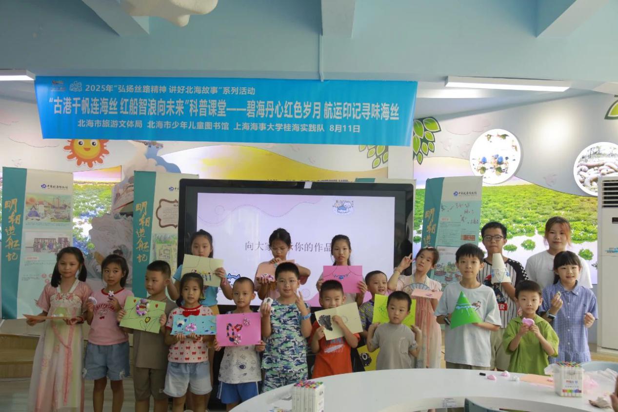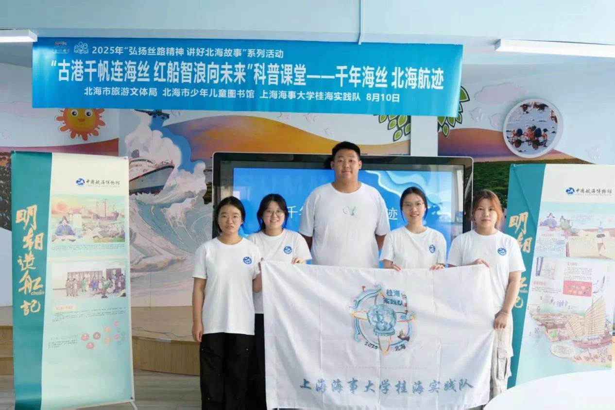 在我國加快發展智慧航運、全力建設海洋強國的時代背景下,2025年8月10日至12日,上海海事大學桂海實踐隊奔赴千年海絲古港——廣西北海,聯合中國航海博物館、北海市少年兒童圖書館,開展“古港千帆連海絲 紅船智浪向未來”主題航海文化宣講活動。這既是貫通古今的海洋文明對話,也是跨越地域的滬桂青春協作,更是為青少年厚植藍色基因、服務國家海洋強國戰略的青春行動。