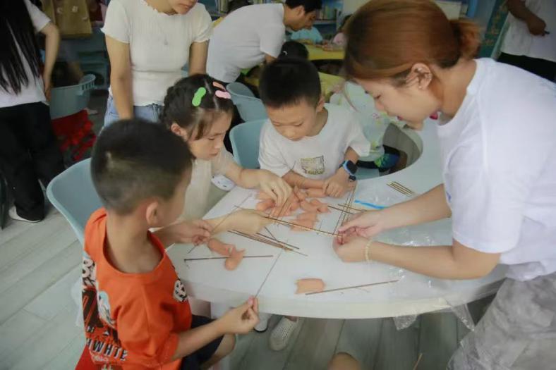 三天的活動,不僅是一次知識的傳遞,更是一場跨越兩千年的航海文明對話。隊員們將鄭和下西洋、海上絲綢之路、現代航海科技等宏大主題,轉化為孩子們可聽、可看、可觸的體驗課堂。2025年8月10日上午10點,宣講員李文豪以鄭和下西洋620周年為契機,生動演繹從古代“水密隔艙”到現代巨輪的壯闊航程。通過親手制作“羊皮筏子”模型,在浮力實驗中親身體驗古人的非凡智慧;2025年8月11日上午9點至11點20分,宣講員張夢雪創新融合紅色教育與海絲非遺,以冠頭嶺、北海老街為坐標,通過擊鼓傳花游戲,重現航運先輩抗戰救國的壯烈史詩。同時宣講員陶暢和北海孩子們化身“古代珠寶商”,用黏土創作海洋珍寶;2025年8月12日收官日上,宣講員古詩穎聚焦國家級非遺北海貝雕,巧妙串聯起古代海絲千帆競發的輝煌與當代航運的智能藍圖,展望未來航運前景。從首日“羊皮筏子”中復原水密隔艙的古船智慧,到次日紅色航運故事與海絲珠寶手工中的文化交融,再到收官日貝雕航海圖所激發的航運夢想。隊員們以多元方式喚醒海洋記憶,讓北海少年在跨越時空的航海之旅中,深度感知中華民族的海洋情懷與開拓精神,埋下一顆承載藍色基因的種子。