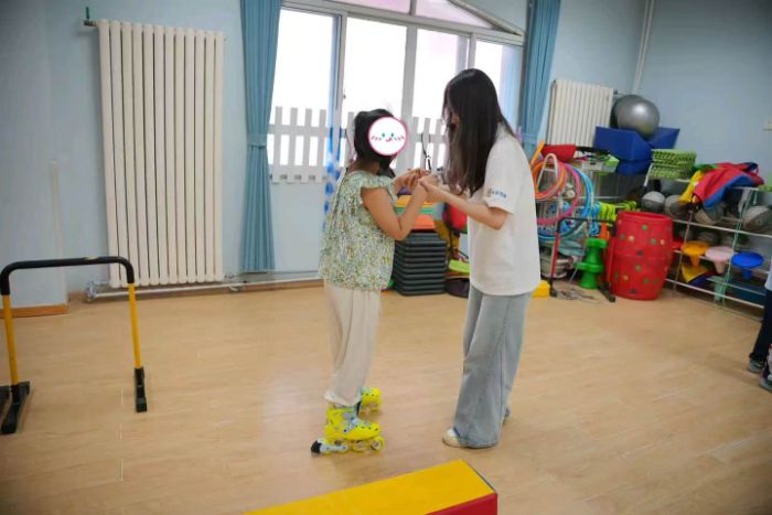 7月28日至8月1日,服務隊持續在濱海學院特教中心開展服務。隊員們通過一對一課業輔導、感統訓練、輪滑教學、水槍游戲等活動,耐心協助教師完成教學任務,密切關注特殊兒童的認知和行為表現,在跳繩、啞鈴、跨越障礙等訓練中提升孩子的身體協調能力。室內自由活動時間里,隊員們陪伴孩子完成鉆石貼畫、共讀圖畫書,在細致互動中培養其專注力和表達能力。此外,隊員們還積極承擔后勤保障、安全看護與應急處理等工作,全面保障每日活動順利開展。