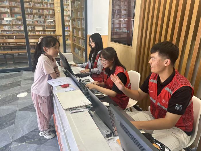 沒過多久,就見三三兩兩的家長牽著孩子往里走。穿碎花裙的阿姨攥著女兒的小手,穿著樸素的爺爺半彎著腰,聽身旁的小男孩嘰嘰喳喳說著什么,每個人臉上都帶著幾分好奇。看見孩子們進來,我和另外兩位值班隊員立刻迎上去,遞上了報名登記表并準備好了簽字筆。“小朋友下學期上幾年級呀?”隊員十分溫柔的問孩子們。小男孩有些怯生生,瞪大了眼睛看我們。家長在一旁笑著補充說:“下半年該上上五年級啦。”我負責高年級同學招生,便主動詢問報名表上的各個問題并認真記錄下來。整個報名流程結束,家長笑著感謝我們,小男孩也不再像一開始那樣緊張了,看到這樣的場景,我的內心也涌出一陣陣的感動。