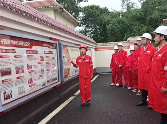 隊(duì)員們剛剛進(jìn)入工作站場(chǎng),熱心的現(xiàn)場(chǎng)工作人員就為大家介紹了平落集氣站多年來(lái)形成的獨(dú)特文化。扎根川西近三十載,站場(chǎng)見(jiàn)證了中國(guó)天然氣開(kāi)發(fā)的歷程:1995年隨平落壩氣田開(kāi)發(fā)而建,開(kāi)創(chuàng)川西超深井脫硫先河;2006年擴(kuò)容成為成都經(jīng)濟(jì)圈核心供氣樞紐;2020年轉(zhuǎn)型為智能示范站場(chǎng)。其文化融合石油精神與巴蜀特質(zhì):以“攻堅(jiān)文化”突破封鎖(首套國(guó)產(chǎn)脫硫設(shè)備留存至今);以“安全文化”守護(hù)30年零重大事故;以“生態(tài)文化”實(shí)現(xiàn)氣田與古鎮(zhèn)共生(獲評(píng)省級(jí)綠色單元);以“社區(qū)紐帶”惠及民眾超萬(wàn)人次(能源開(kāi)放日、工匠長(zhǎng)廊)。這座龍門(mén)山麓崛起的能源堡壘,從戈壁帳篷到智能廠(chǎng)區(qū)的變遷,生動(dòng)踐行著“為天府送福氣”的使命,成為石油精神與時(shí)代交融的豐碑。