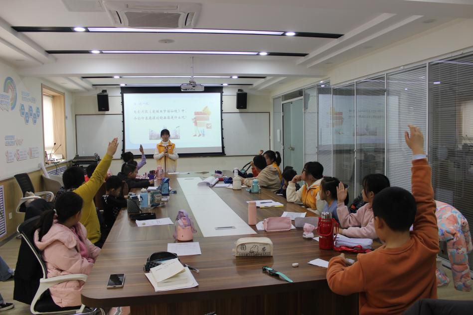上午十點半,山東大學本科生吳美嫻圍繞“當電影遇上閱讀”的主題,為孩子們帶來電影和閱讀美妙碰撞的視聽盛宴。她結合親身經歷和權威結論講述電影和閱讀之間的緊密聯系,引出通過觀看電影提高閱讀水平的有效方式。《愛麗絲漫游仙境》、《小王子》的電影改編和名著推介是本堂課的精彩部分。孩子們一方面觀看精彩的電影片段,了解名著的基本內容;另一方面掌握閱讀目錄、建構框架的讀書方法,通過經典片段的劇本演繹激發閱讀書籍的興趣。課堂氛圍十分活躍,孩子們積極發言,達到了預期的課堂效果。