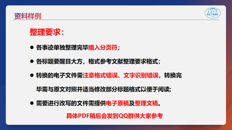 隨后,郭永博以已整理的資料為樣例,詳細講解了資料整理時的要求和需要注意的細節,以便后續實踐團對院史資料整理工作的順利進行。