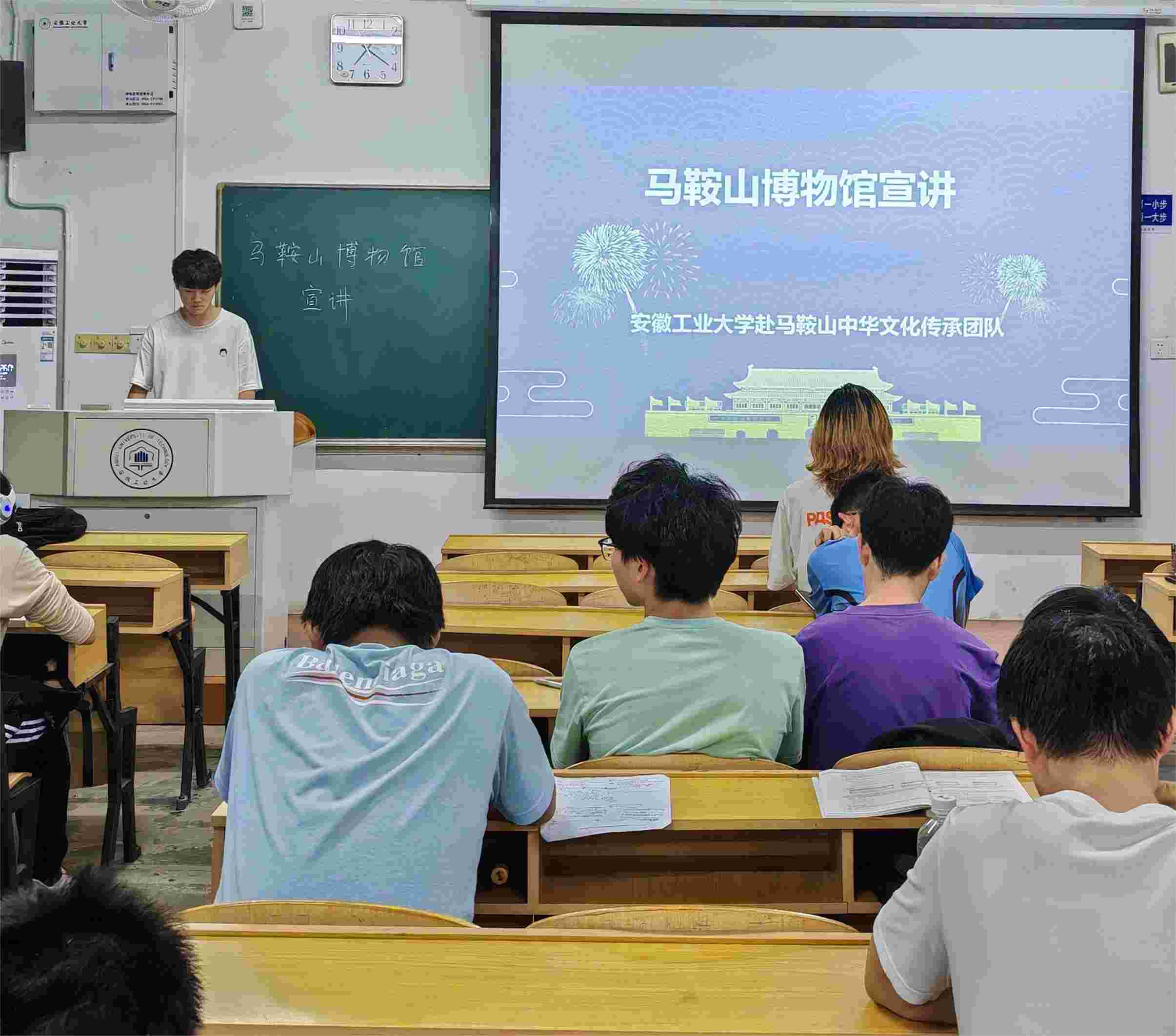 這一幕,是同學們在參觀馬鞍山市博物館后,將所學所感轉化為宣講內容傳遞給更多人。屏幕上的內容,是他們精心準備的PPT,每一頁都承載著博物館的珍貴記憶和深厚文化底蘊。同學們通過這樣的方式,將博物館的文物、故事和歷史,生動地展現在更多人面前,讓中華文化的魅力得以延續。宣講會現場,同學們積極參與討論,時而低頭沉思,時而抬頭交流,氣氛熱烈而有序。這種互動性的教學方式,不僅激發了同學們的學習熱情,更促進了他們之間的思想碰撞和靈感交流。在這里,每個人都是自己故事的講述者,也是他人故事的傾聽者,共同編織著一段段關于文化傳承的美好記憶。