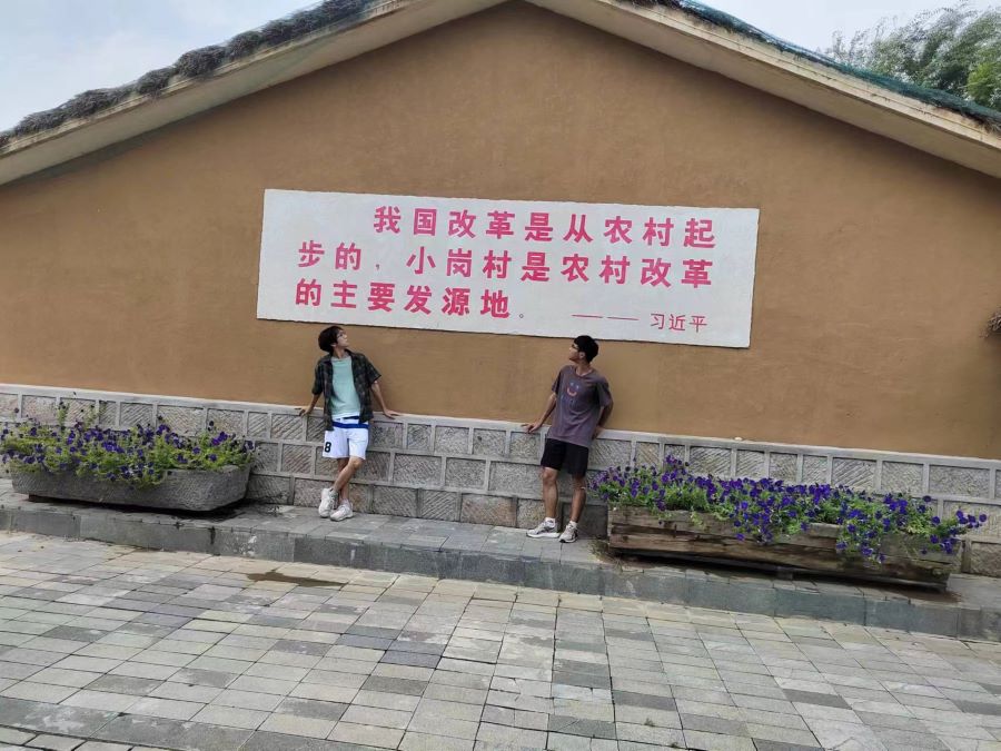 ? 圖為團體成員進入小崗村時的合影。 王寅慶供圖