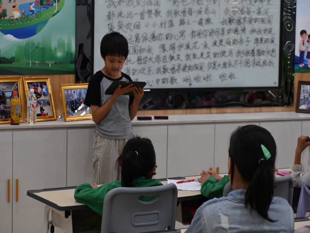 這一天,臨夏回族自治州東鄉族自治縣索南鎮城南社區的少數民留守兒童們匯聚一堂,共同經歷了一場長達兩個多小時的“音樂會”盛宴。他們迫不及待地輪流跑上講臺,然后又迅速回到座位,生怕錯過任何一個精彩的瞬間。孩子們滿懷激情地走向志愿者和小伙伴們,輪番演唱著悠揚的民族歌曲和飽含深情的愛國抒情歌,歌聲在空氣中回蕩,充滿了生機與活力。