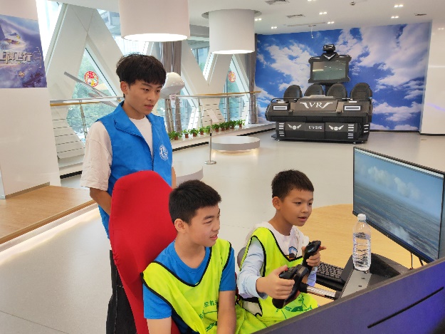此外,實踐團隊成員還組織小朋友們參與模擬駕駛飛行任務,讓他們在模擬器中體驗飛行駕駛員的工作,深刻感受到航空駕駛任務的復雜性和艱巨性,進而學習團隊合作精神,提升解決問題的能力。
