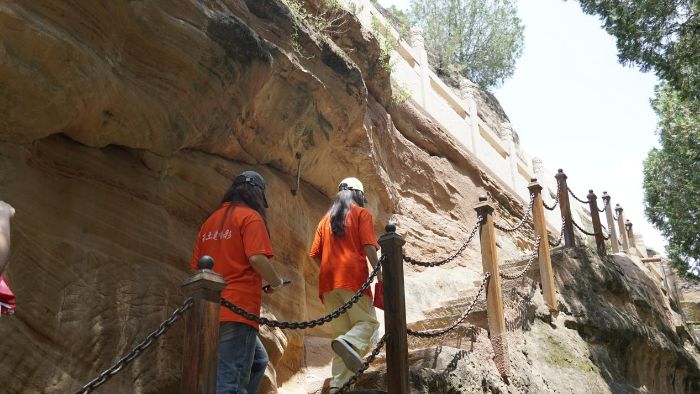 圖為團隊正在觀察王母宮石窟。王梓帆 供圖