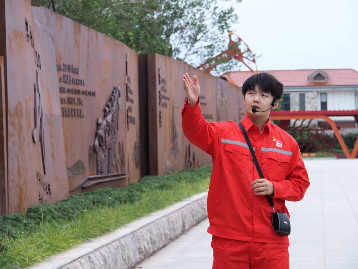 隨后,在講解員的帶領(lǐng)下,實踐團(tuán)成員踏入“點(diǎn)亮荒原”板塊。一尊尊雕塑、一處處場景,生動還原老一輩石油人在荒原之上的奮斗足跡。來到顧心懌院士銅像前,他身著工裝,手持書本,目光注視前方。旁側(cè)紅棕色藝術(shù)裝置上,刻有“中國要發(fā)展石油工業(yè) 必須有自己的專家”“一生無悔石油情” 等字樣,彰顯了顧心懌院士為石油事業(yè)奉獻(xiàn)的情懷,傳遞出厚重的石油奮斗精神。