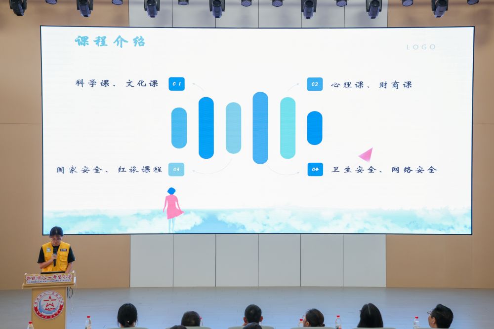副校長張世賢致辭結(jié)束后,廈門大學嘉庚學院會計與金融學院青年志愿者隊隊長陳樂彤上臺,詳細介紹了此次夏令營的課程規(guī)劃。她表示,本次暑期興趣課程班將以嘉庚精神中“忠、公、儉、誠、毅”的豐富內(nèi)涵為引領,精心設置科學探秘、文化浸潤、心理護航、財商啟蒙、國家安全、紅旅課程、衛(wèi)生防護、網(wǎng)絡安全八大主題課程。課程將在拓展課外知識的基礎上,融入趣味實驗、互動游戲、實踐體驗等多元形式,讓孩子們在輕松愉快的氛圍中拓寬視野、收獲知識,度過一段充實而有意義的時光。