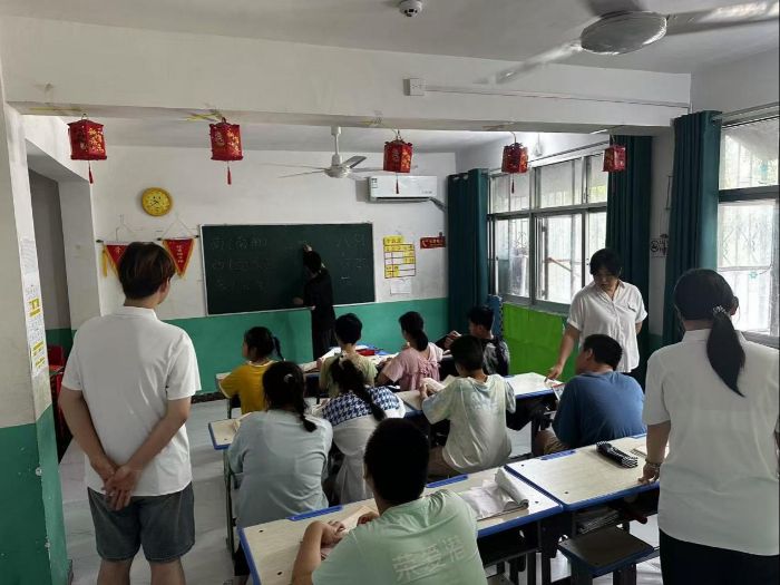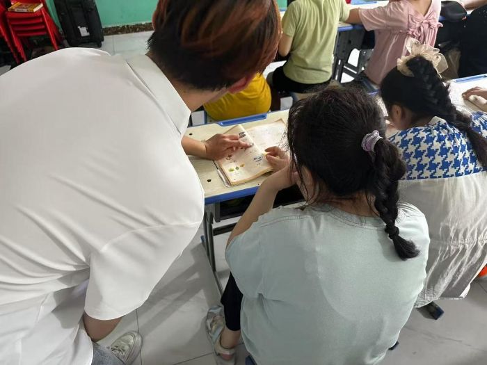 圖為實(shí)踐隊(duì)員輔導(dǎo)學(xué)生功課。張漢榮 供圖