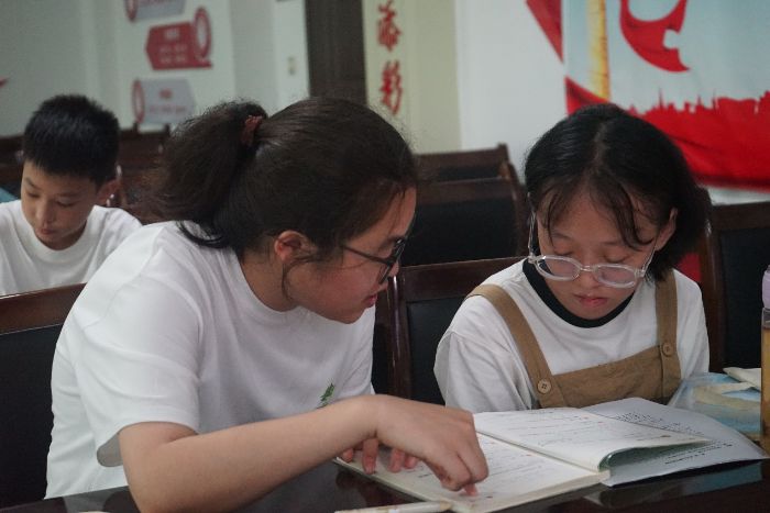 實(shí)驗(yàn)結(jié)束后,實(shí)踐團(tuán)成員轉(zhuǎn)入作業(yè)輔導(dǎo)環(huán)節(jié)。針對(duì)同學(xué)們?cè)跀?shù)學(xué)、語文等學(xué)科中遇到的難題,成員們一對(duì)一進(jìn)行講解,通過啟發(fā)式提問引導(dǎo)大家獨(dú)立思考。整個(gè)輔導(dǎo)過程氛圍輕松,同學(xué)們的提問積極性高漲。