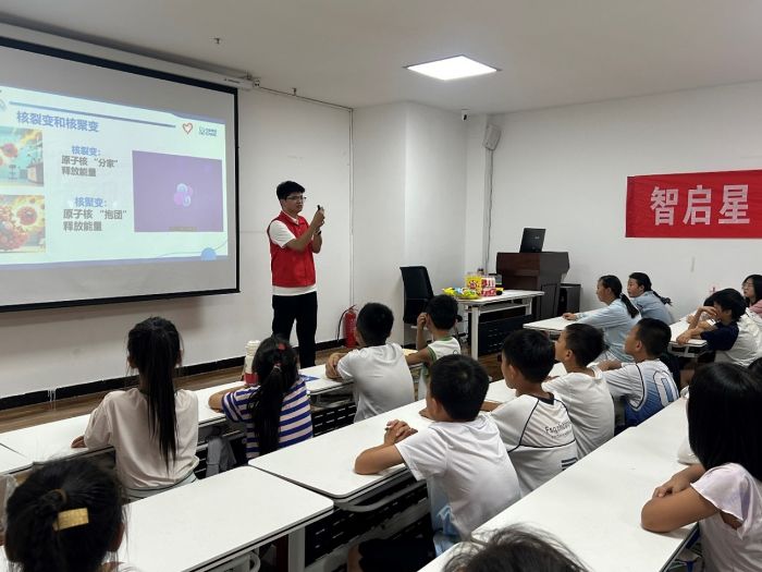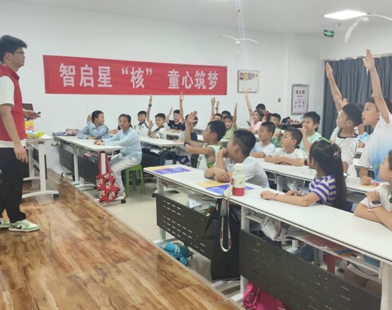 除了精神引領,本次宣講活動還注重科技普及。在紫錦社區(qū),宣講成員通過動畫視頻與模型演示,向孩子們展示了核反應堆的基本工作原理,并以我國首座完全自主設計建造的秦山核電站為例,講述中國在核能發(fā)展上從無到有、由弱變強的歷程。孩子們在圖像與實物的配合中,更直觀地理解了這些“看不見的力量”如何在現(xiàn)實中發(fā)光發(fā)熱,也在心中埋下了對科技事業(yè)的熱愛與憧憬。