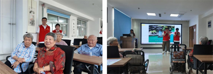知識(shí)課堂添趣味紅歌傳唱續(xù)情懷 服務(wù)隊(duì)抵達(dá)薛城區(qū)親和源康養(yǎng)中心后,精心組織了多元化的課堂活動(dòng)。通過情景劇演繹的防詐課堂,以生動(dòng)形式為老人普及防騙知識(shí);開展健康課堂傳授養(yǎng)生之道,增強(qiáng)老人健康管理意識(shí);設(shè)置智能手機(jī)課堂,切實(shí)幫助他們?nèi)谌霐?shù)字生活,跨越“數(shù)字鴻溝”。為進(jìn)一步豐富老人們的精神文化生活,服務(wù)隊(duì)陪爺爺奶奶進(jìn)行書法、手工制作等互動(dòng)環(huán)節(jié)。志愿者與老人們共同揮毫潑墨,感受傳統(tǒng)文化的魅力;手工制作區(qū)同樣充滿歡聲笑語,老人們?cè)谥驹刚邊f(xié)助下完成一件件手工藝品。