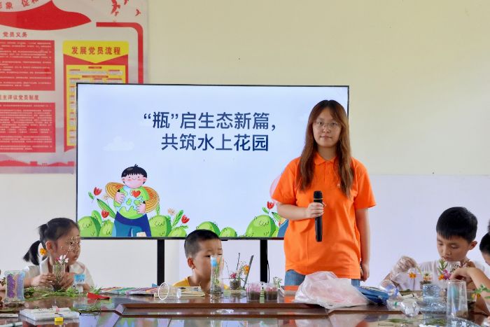 7月22日,湘西州古丈縣斷龍山鎮(zhèn)白溪關村黨群服務中心里笑聲此起彼伏。湖南工商大學“望山”青禾服務隊以“細微之處見生態(tài),方寸瓶身可造綠”為理念,為30余名學生開啟“‘瓶’啟生態(tài)新篇,共筑水上花園”——塑料瓶創(chuàng)意實踐課,將廢棄瓶罐化身掌上“微花園”,讓鄉(xiāng)土童年與綠色科技在指尖悄然握手。
