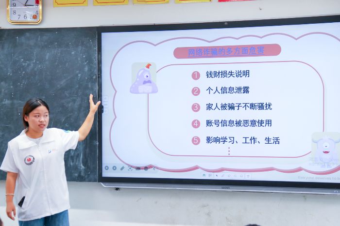 午后的安全教育課程圍繞網絡詐騙防范展開。支教老師以3起山區學生遭遇的真實案例(“冒充助學機構詐騙”“游戲賬號交易詐騙”“刷單返利詐騙”)為樣本,分析詐騙分子的操作流程:包括信息獲取、誘餌設計、心理誘導、轉賬實施等環節,明確此類行為可能造成的財產損失、個人信息泄露等后果。