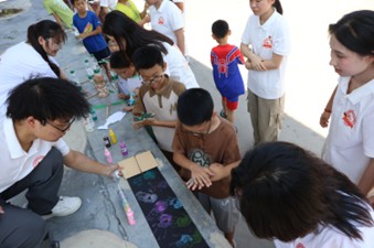 實踐團與村委會聯合開展了書法活動與授牌儀式,弘揚傳統文化。與此同時,楊麗萍小分隊深入村中走訪,進行問卷調查,了解村民需求,為后續公益活動積累寶貴資料。結營儀式的尾聲,稚嫩的手印在紀念冊上綻放成花,孩子們在紀念手印冊上按下彩色的手印,并簽下自己的名字。實踐團成員于欣茹、范子龍等人悉心組織,確保活動有序進行。最后,全體成員與孩子們一起拍攝了大合照,為夏令營畫上了圓滿的句號。