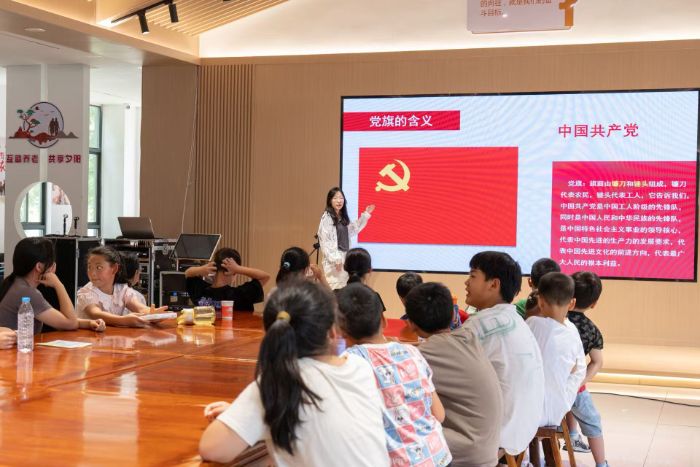 2025年7月20日,在湯店村實踐中心的支教課堂上,河海大學“追光”支教團用一堂以“祖國旗幟在我心”為主題的思政課,為小學生們開啟了一場生動的紅色教育之旅,通過“認知+實踐”的特色課堂,讓山村孩子讀懂旗幟里的中國故事,在孩子們心中播撒下愛國的種子。