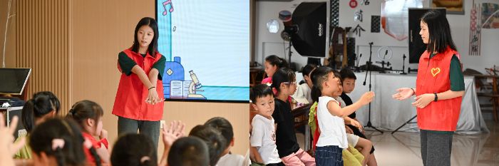 支教團成員姚嘉言示范心肺復蘇動作并與學生互動