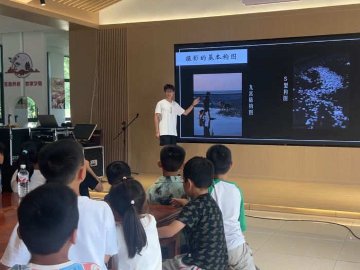 2025年7月24日,為提升鄉村兒童美育素養,拓展藝術表達視野,河海大學“追光”支教團于金寨縣青山鎮湯店村開展“九宮格納青山顏,取景框收云海篇”主題攝影課。課程聚焦曝光三要素、構圖技法與景別運用,帶領學生探索攝影的藝術世界。