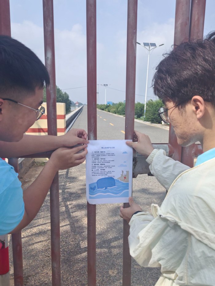 在實地考察過程中,實踐團特別開展了"護水公約"張貼活動。成員們結(jié)合前期調(diào)研成果,精心編制了《小塔山水庫護水公約》,從"嚴禁丟棄垃圾""嚴禁傾倒農(nóng)業(yè)廢物"等四個方面提出具體倡議。這份公約被張貼在水庫周邊的顯要位置,并獲得了當?shù)鼐用窈陀慰偷姆e極響應。