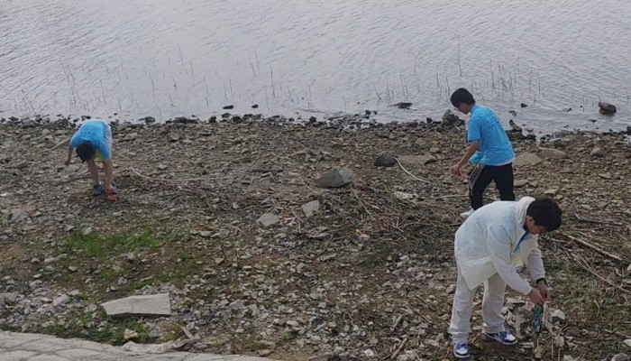 圖6成員在水庫邊撿拾垃圾