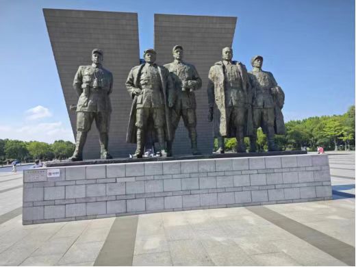 (圖為渡江戰(zhàn)役紀(jì)念館前幾位重要人物的雕塑)渡江戰(zhàn)役紀(jì)念館位于合肥市,以其現(xiàn)代化的展陳方式和豐富的歷史文物吸引了大量觀眾。紀(jì)念館的藏品數(shù)量和質(zhì)量非常豐富且具有很高的歷史價(jià)值。紀(jì)念館共展出文物956件,其中包括一級(jí)文物11件、二級(jí)文物38件。這些展品主要以基本展陳《百萬(wàn)雄師過大江》為主線,通過歷史照片、文物、油畫、雕塑等形式,共計(jì)2500余件展品,向公眾展示了渡江戰(zhàn)役的歷史場(chǎng)景和重要意義。展示內(nèi)容不僅陳列著文物,還有著豐富的影像資料和紀(jì)錄片,全面展示了渡江戰(zhàn)役的歷史過程和重要意義。在互動(dòng)體驗(yàn)中,紀(jì)念館采用了最新的藍(lán)幕摳像技術(shù)和4D電影等技術(shù),讓觀眾能夠更加直觀地體驗(yàn)渡江戰(zhàn)役的真實(shí)場(chǎng)景。此外,紀(jì)念館還推動(dòng)了線下線上融合發(fā)展,使得紅色基因和紅色文化更加生動(dòng)地傳遞給公眾。