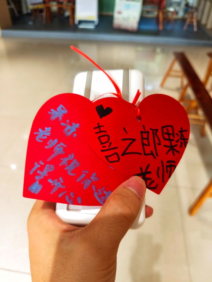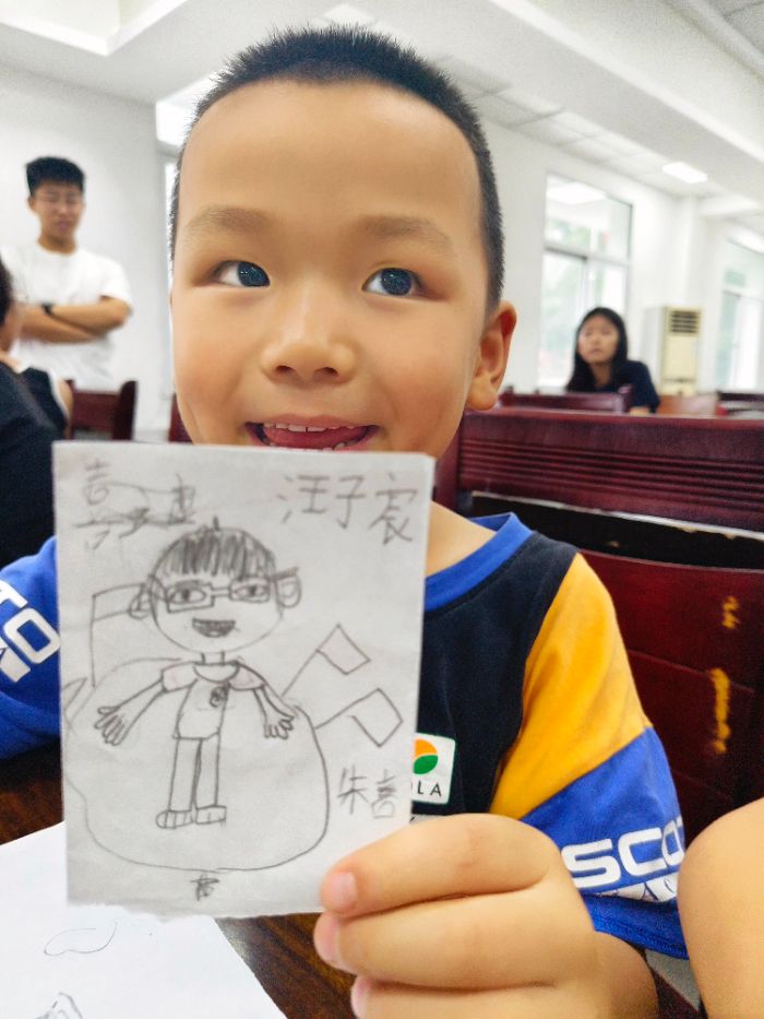 現在還依然記得“四小只”的故事呢。第一天自我介紹時,我告訴孩子們可以叫我“喜子老師”,后面下去輔導功課時,他們四小只坐在一起,我輔導完他們的作業后,突然想問問他們記不記得我叫什么老師,其他三個人都回答對了(當時聽到的時候既驚訝又高興,畢竟我只介紹了一遍就能記住,更何況還有其他那么多老師呢),唯獨二寶,他可能因為口音的原因,把我叫成了“喜之郎老師”。他這話一出,另外三小只也都在那里邊笑邊重復念叨著“喜之郎老師”——從此,“喜之郎老師”“喜之郎果凍老師”等稱號在孩子們之間廣泛流傳。現在想來一切都正正好,在正式開課前,我們還去鎮上的商場采買一些生活物品時,我就曾看中了一款超大型果凍(雖然最后還是沒買)。“喜之郎老師”,嗯,感覺挺不錯的,念起來也朗朗上口呢。